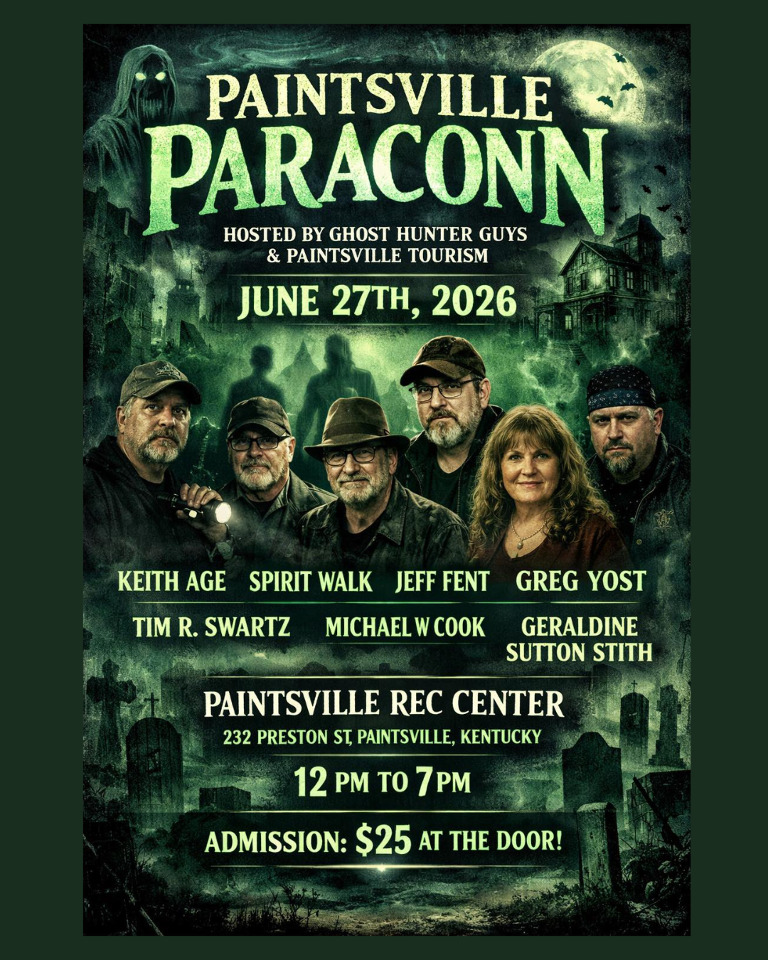 Join us on Saturday, June 27, 2026, for Paintsville ParaConn, an unforgettable day filled with paranormal investigations, ghost stories, haunted vendors, and special guest speakers at the Paintsville Recreation Center.