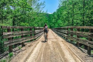 The Dawkins Line Rail Trail is the largest rail-to-trail in the state and is open year-round, stretching 36 miles from
